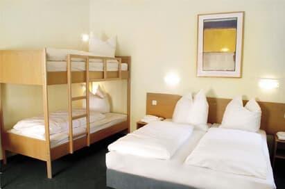 The hotel is located in the district of ‘Mitte/Wedding’ in the north of the city. It is a 3 minute walk to the U-Bahn and S-Bahn stations at ‘Gesundbrunnen’ (5 stops to Brandenburg Gate and 8 stops to Zoo Station). Next to the hotel is a large park with an outdoor swimming pool (summer only) and an indoor climbing centre. The large shopping mall ‘Gesundbrunnen’ and restaurants are situated nearby.